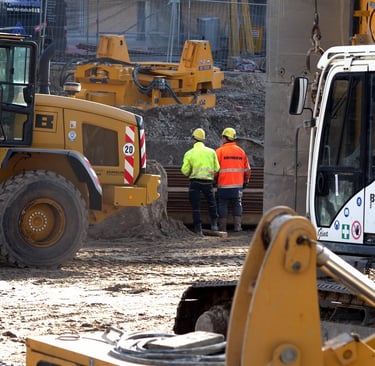 Materials are exposed, structural elements may be incomplete, and heavy equipment is operating continuously. These conditions create a higher probability of accidental damage.